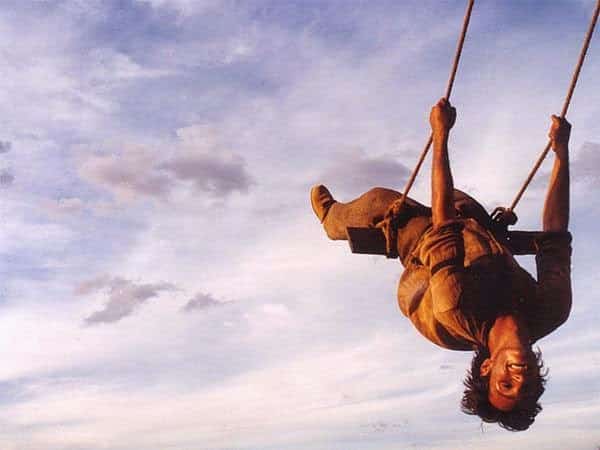 A moça gira e pede para ele continuar a girar. É notável a satisfação e alegria em sua voz nesta cena que nos absorve e nos distancia do tempo do filme. Esquecemos de todo o resto, envolvidos com o “gira-gira” dos dois, destacando-se ao fundo um céu azul e infinito.